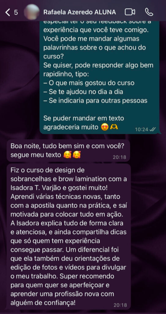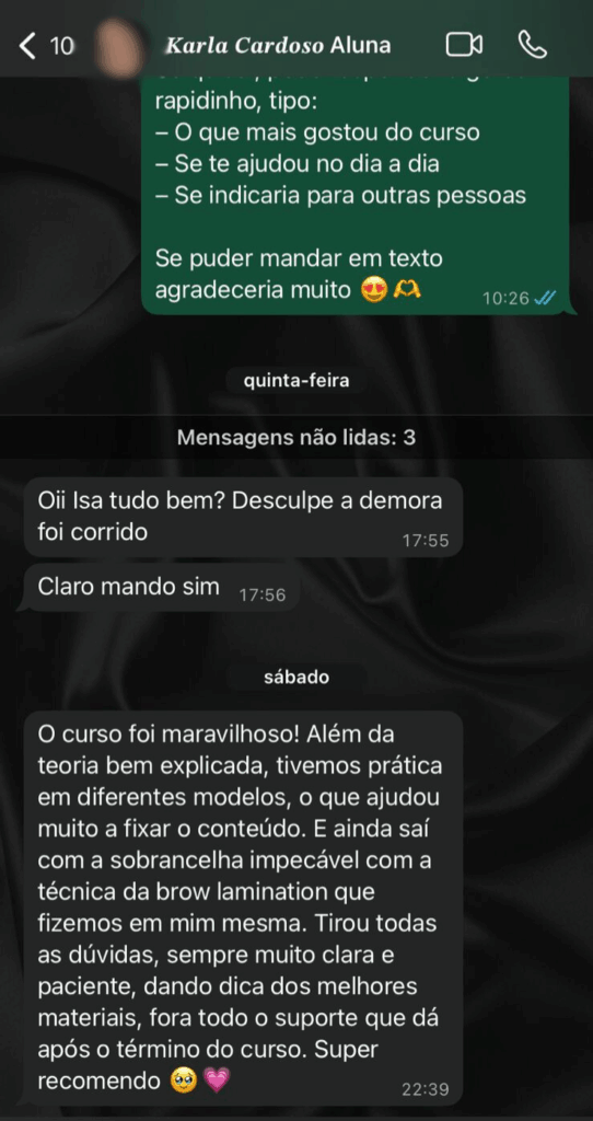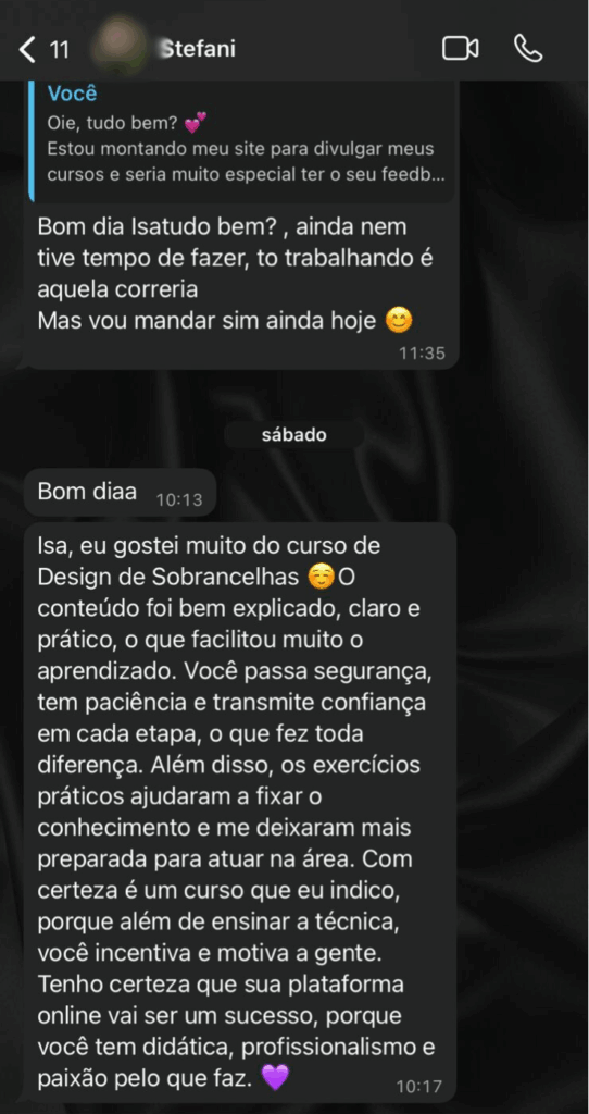 Desde 2020, ajudo mulheres a conquistarem autoestima e independência financeira através do Design de Sobrancelhas.